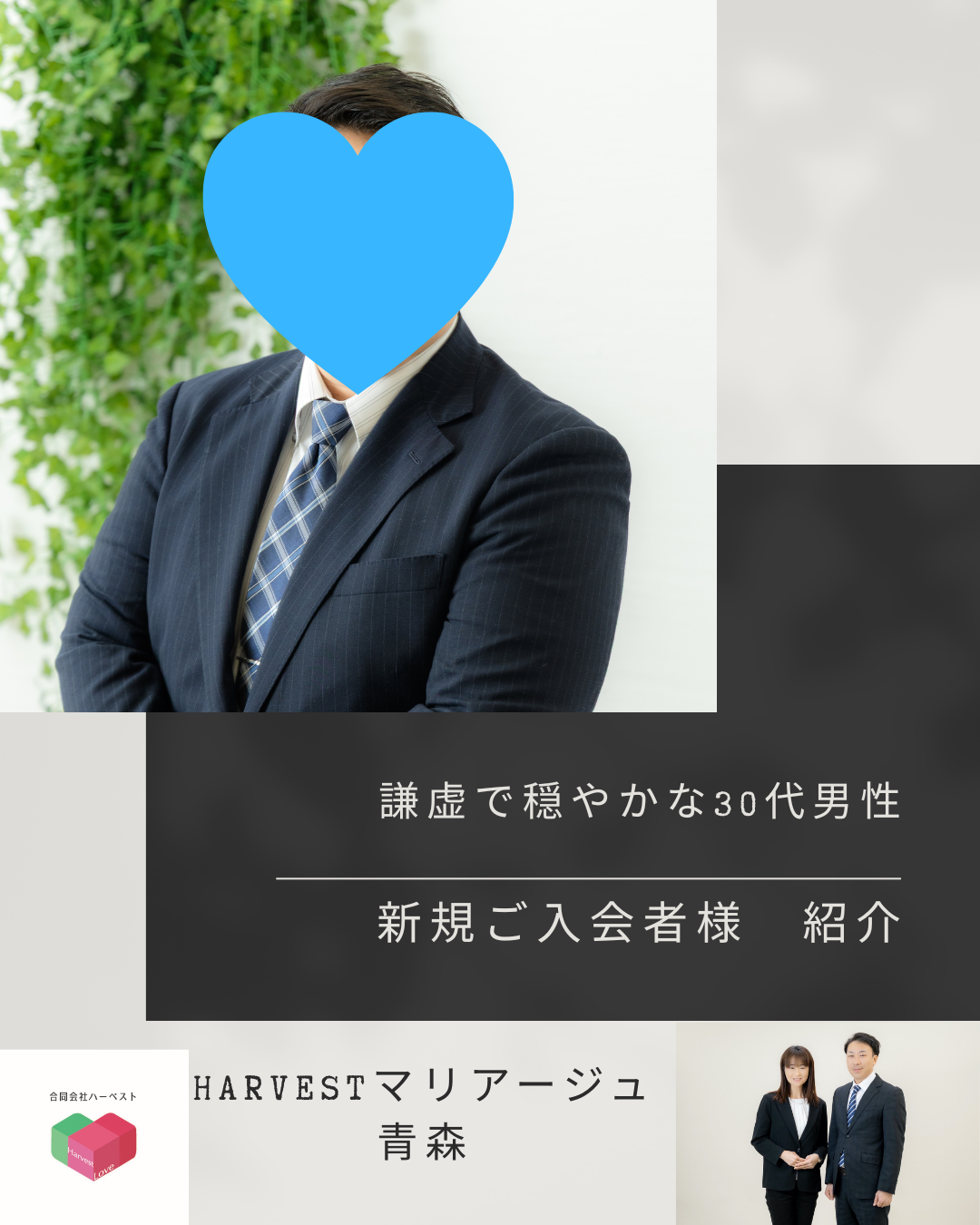 この度、Harvestマリアージュ青森に30代男性の方にご入会いただきました。